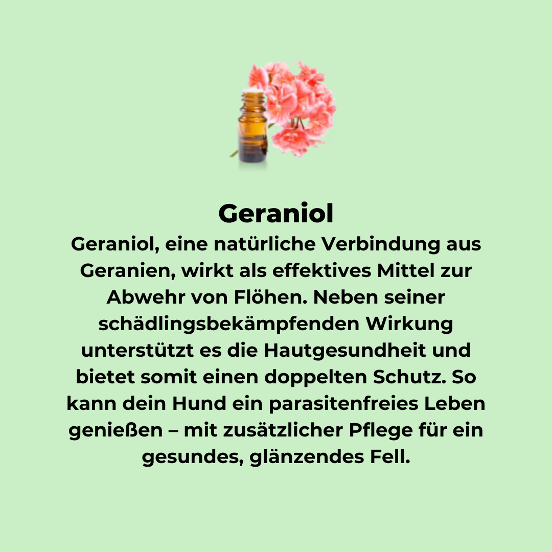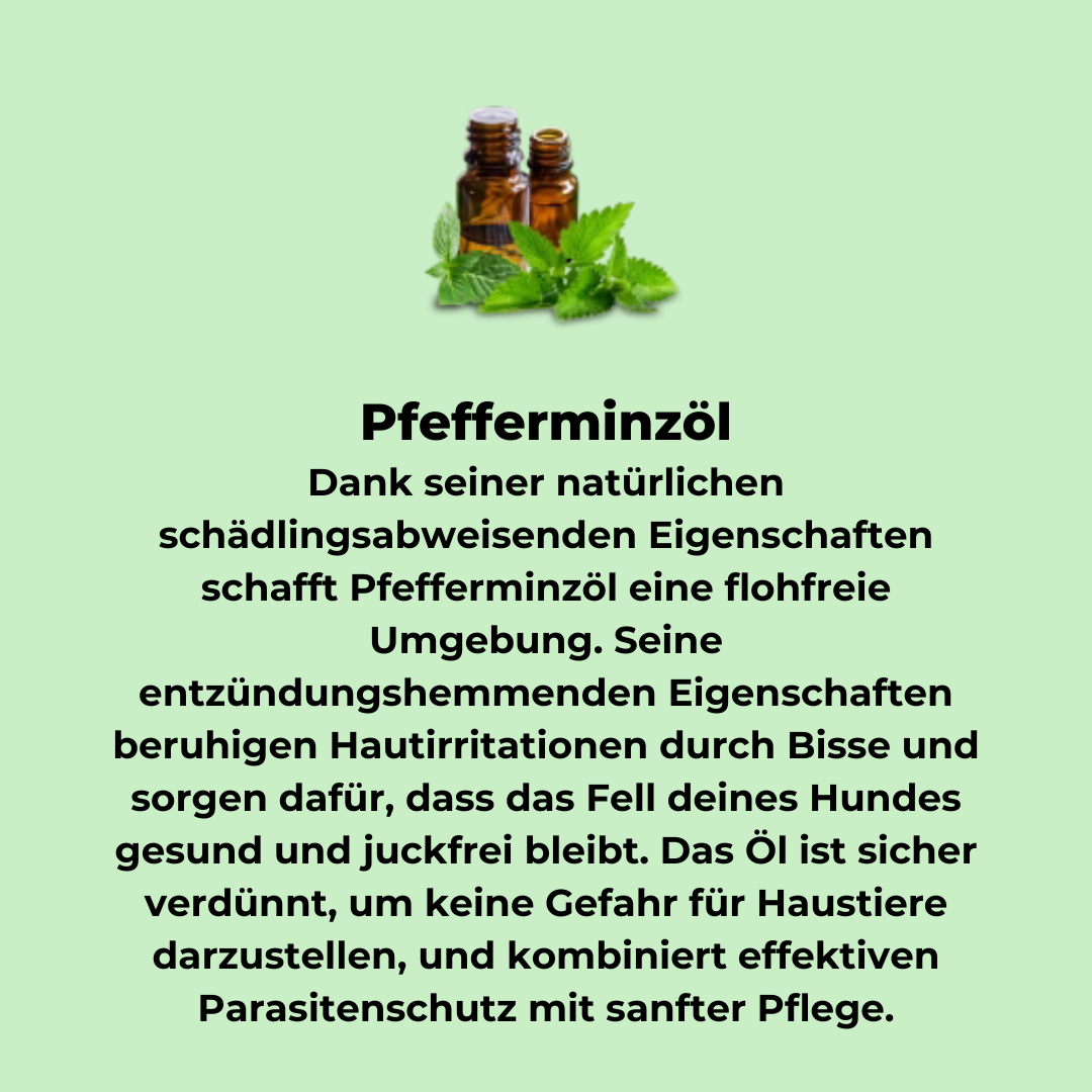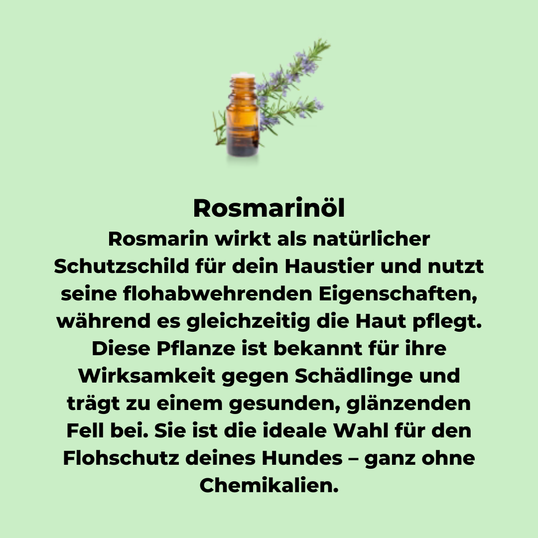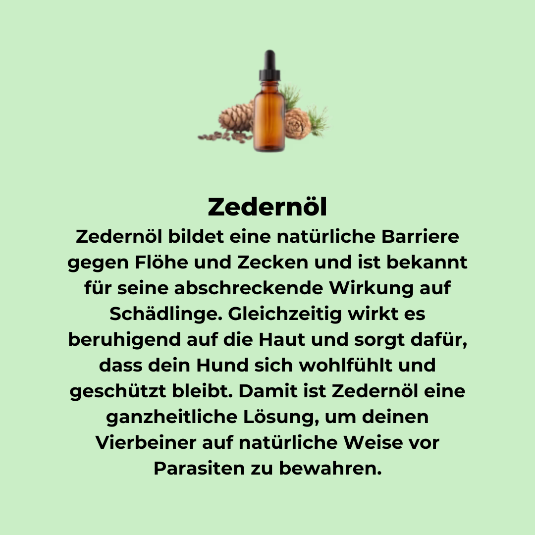 Die natürlichen Öle machen den Hund für Flöhe und Zecken unattraktiv, sodass diese Schädlinge abgestoßen werden, bevor sie sich festsetzen können.
